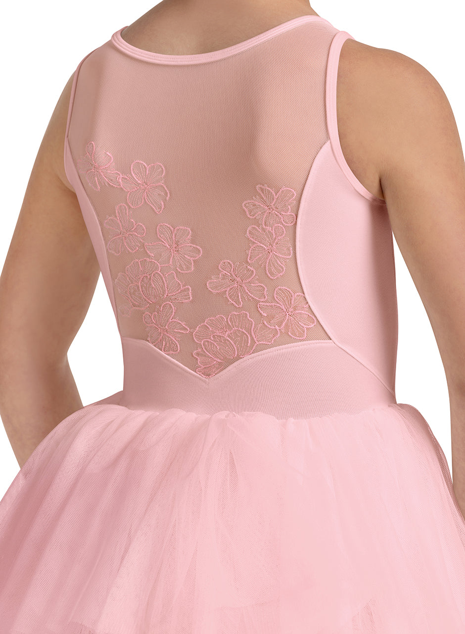 Our Girls Maria Tank Tutu Dress features comfortable tank straps, a full attached tulle tutu skirt with an intricately embroidered floral mesh back. Discover our delightful Camellia dancewear collection, each piece features soft, elegant designs that move with the body, accented by charming camellia floral embroidery.